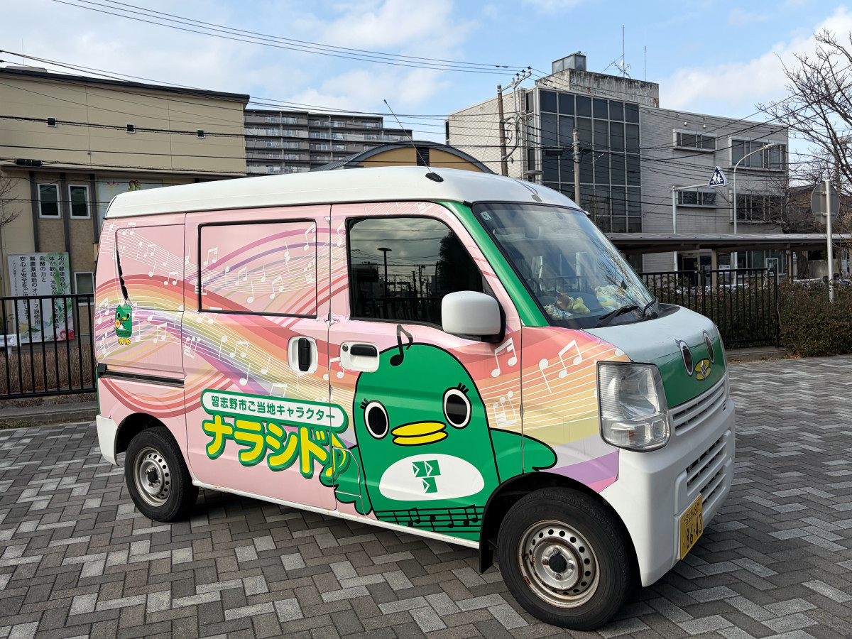 習志野市のご当地キャラクター「ナラシド♪」が描かれた車両。