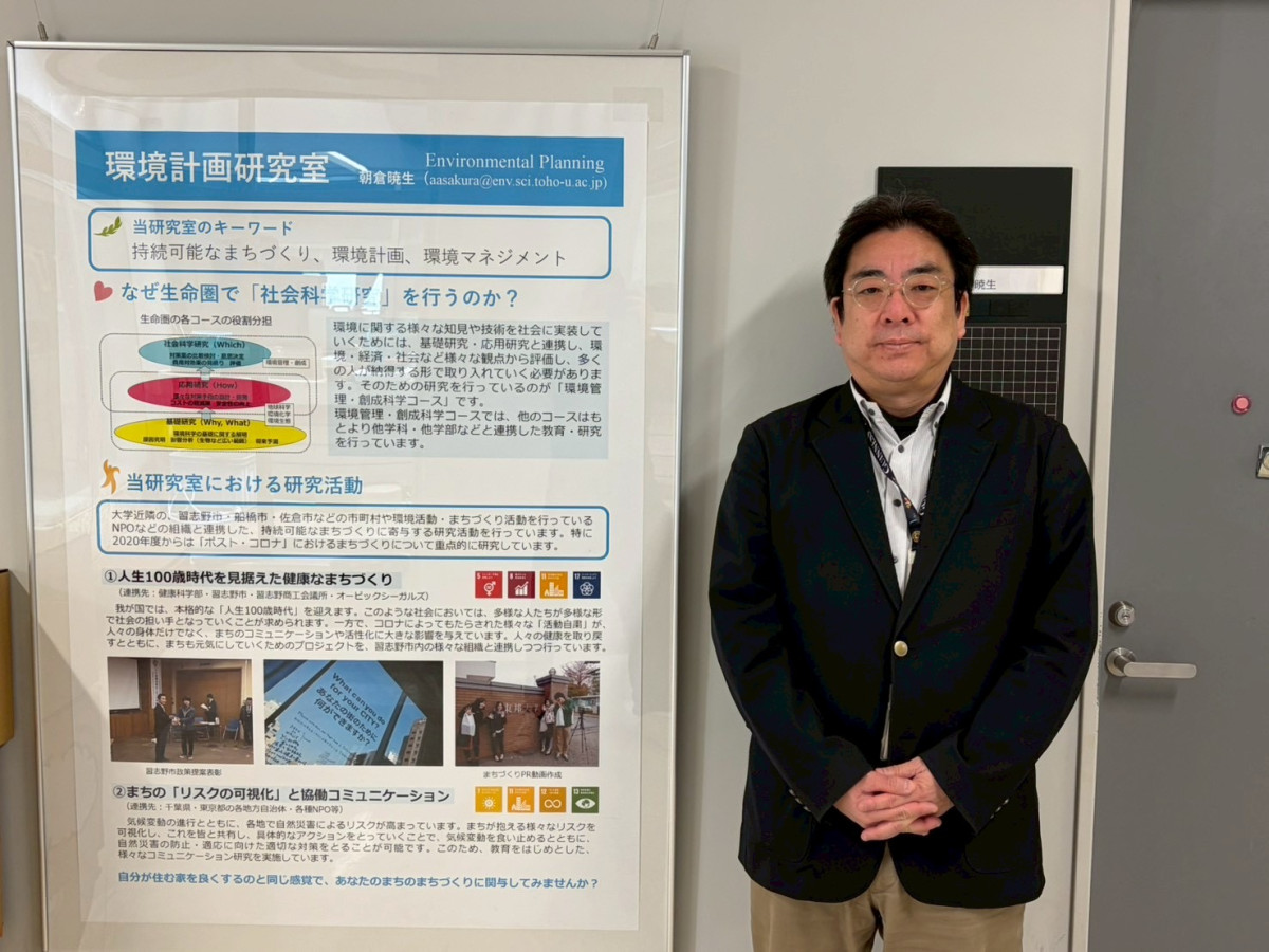 習志野市で活動する人の横顔や思いを伝える連載企画「それいけ!習志野」。今回話を聞いたのは、東邦大学理学部生命圏環境科学科教授の朝倉暁生さん。専門は環境計画。自治体の環境基本計画作りや住民参加の仕組み作りに長年携わり、現在も地域に関わりながら、教育とまちづくりの接点を見つめ続けている。