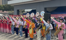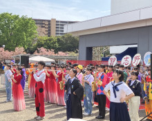 日立産機システムで花見会 ヒーローショーや習志野高吹奏楽部の演奏も
