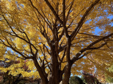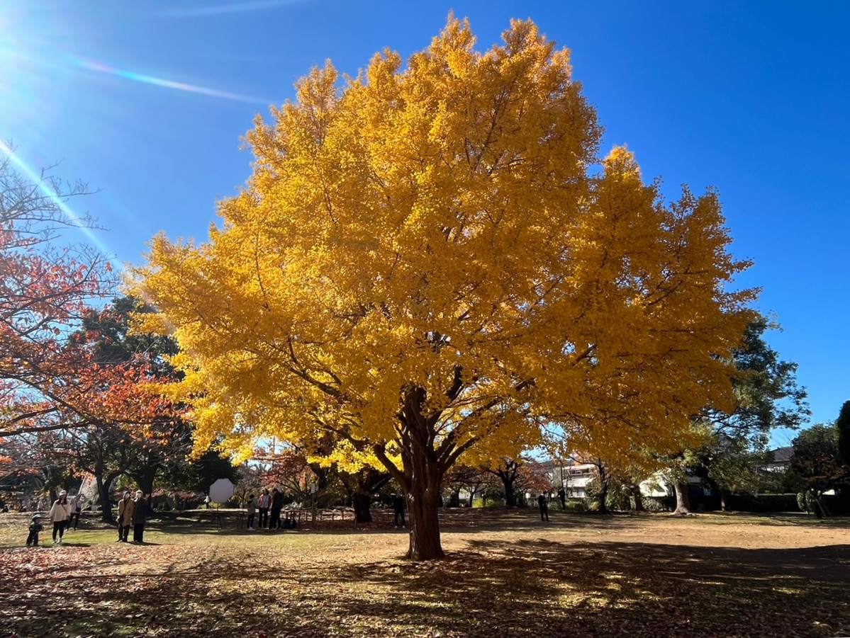 谷津公園(習志野市谷津3)の大イチョウが鮮やかな黄色になり見頃を迎えた。