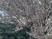 JR津田沼駅南口にある「津田沼公園」(習志野市谷津1)で現在、ヒマラヤザクラが見頃を迎えている。園内では、淡いピンク色の花を咲かせた桜の枝にメジロが集まり、訪れた人々の目を楽しませている。