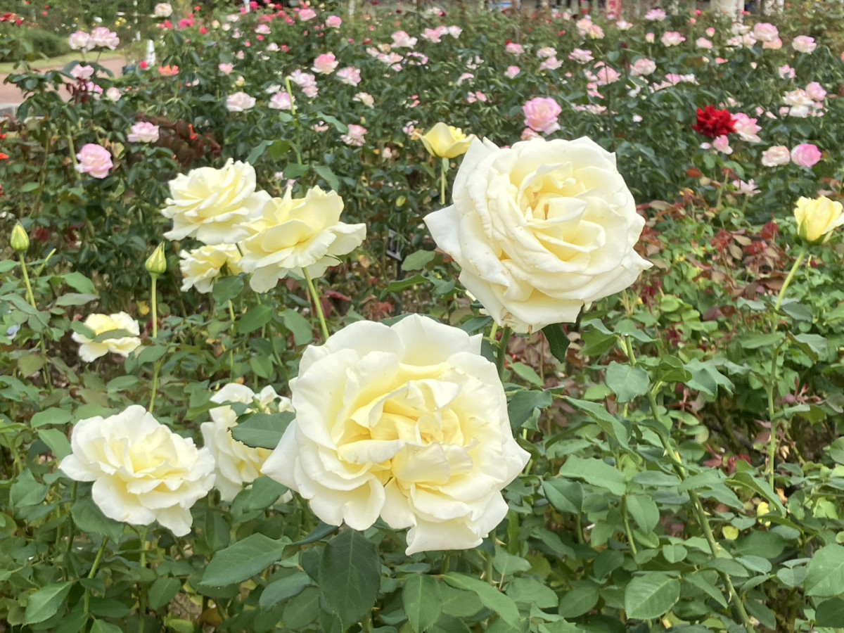 習志野の谷津バラ園(習志野市谷津3)の秋バラが現在、見頃を迎えている。