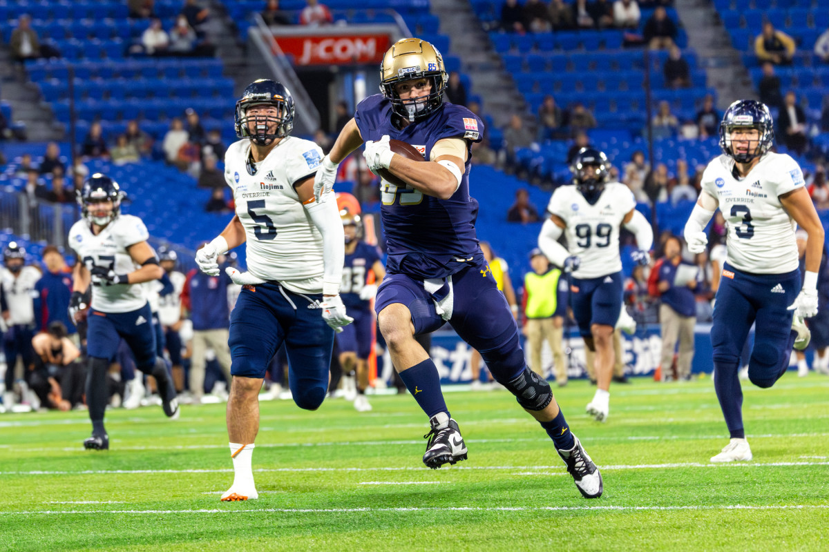 アメリカンフットボールチーム「オービックシーガルズ」が11月8日、横浜スタジアム(横浜市中区)で行われたXリーグ秋季最終節でノジマ相模原ライズと対戦し、逆転勝利を収めた。