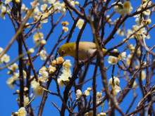 習志野・梅林園で梅が見頃に 蜜に誘われメジロも来訪
