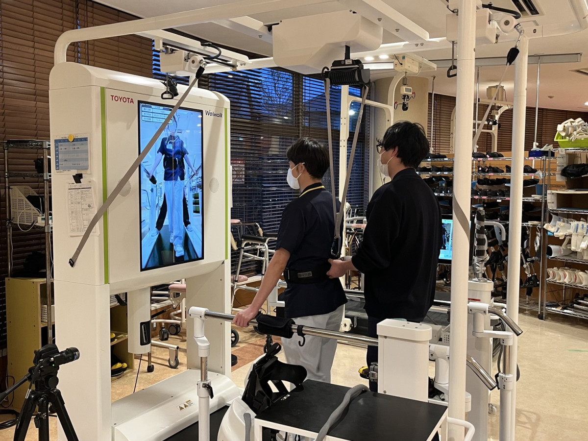 リハビリテーション支援ロボット ウェルウォークを使用している様子<記事を読む>