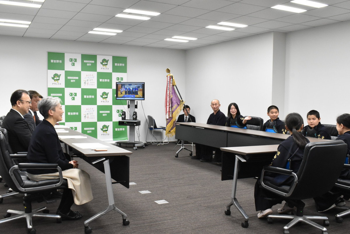 習志野市を活動拠点とする小学生剣道「袖ケ浦剣道同好会」が3月13日、全国大会予選会の団体戦で優勝し、全国大会へ出場することを市長・議長・教育長へ報告した。