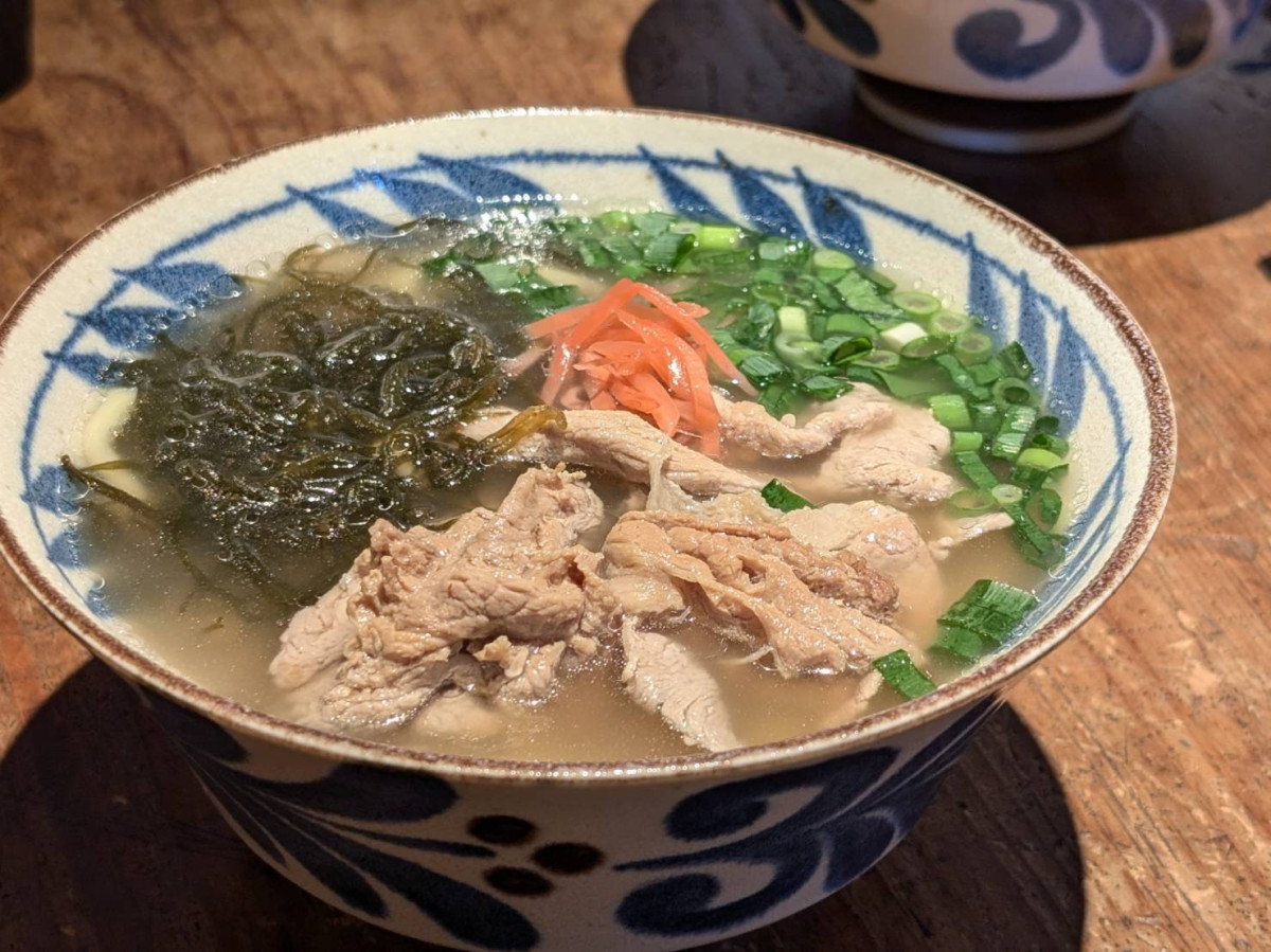 看板メニューの沖縄そばにもずくも加えた「全部のせ」(1,100円)