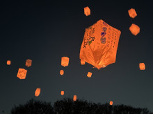 実籾でスカイランタン200基 第四中の校庭で願い夜空へ