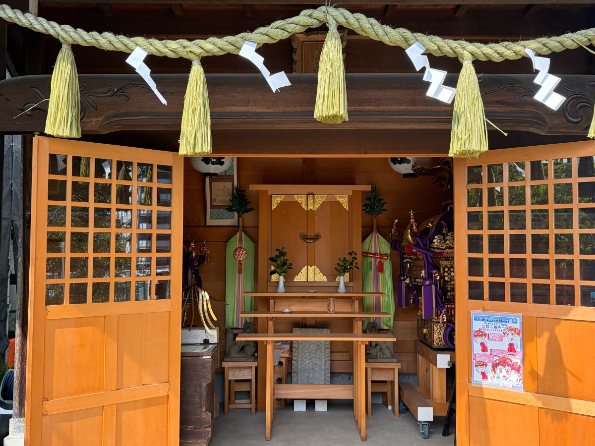八坂神社(習志野市津田沼1)で4月18日、新たに整備を進める社務所・祈祷(きとう)殿の棟上げ式が行われた。