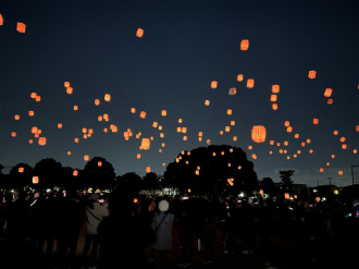 習志野市立第四中学校(習志野市東習志野3)の校庭で12月6日、実籾マルシェ実行委員会による「けやきフェスタ後夜祭&スカイランタン」が開催された。