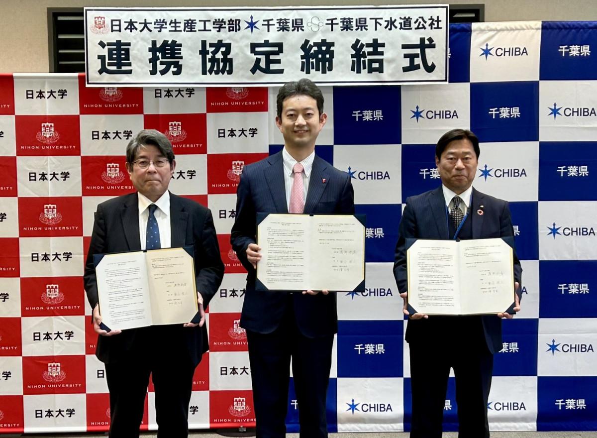 日本大学生産工学部(習志野市泉町)が1月26日、千葉県・千葉県下水道公社と「下水道施設の維持管理・技術開発の推進に関する連携協定」を締結した。